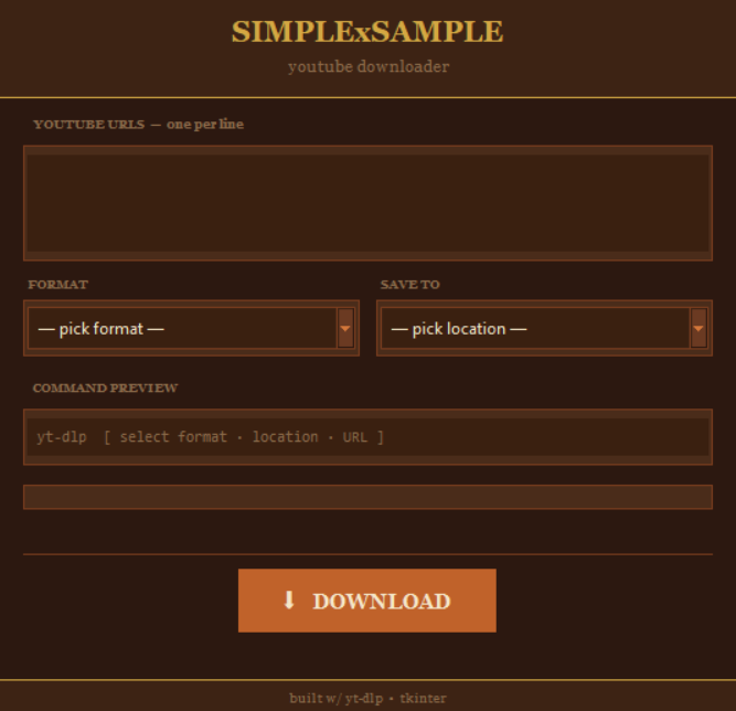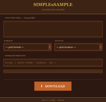 SIMPLExSAMPLE is a python based app to automate ytdlp commands in order to download music samples and videos from youtube for production purposes.